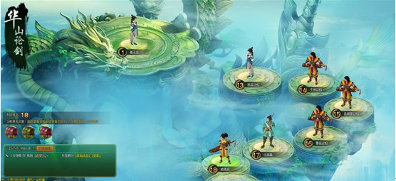 在华山论剑中,玩家可自由选择另一玩家进行PK;可查询所要PK的玩家的信息;可在PK之前进行布阵、强化等操作;在选定一个玩家进行PK后,获得胜利的一方可获得一定奖励;反之挑战失败也会获得小部分奖励。